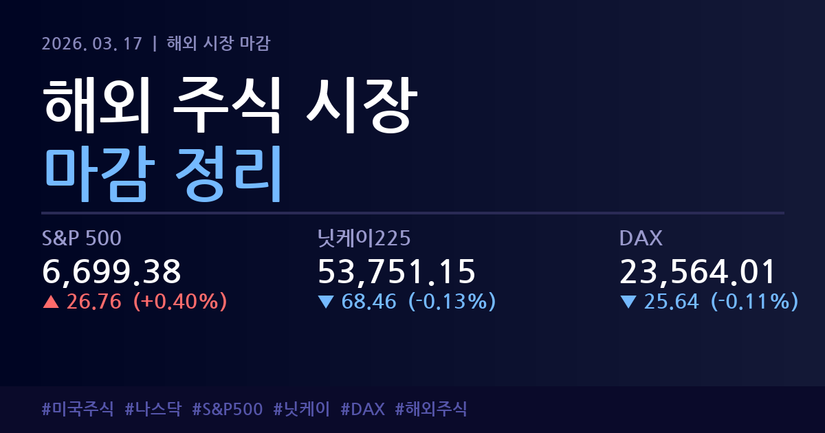 03μ 17μΌ ν΄μΈ μ£Όμ μμ₯ λ§κ° μ 리