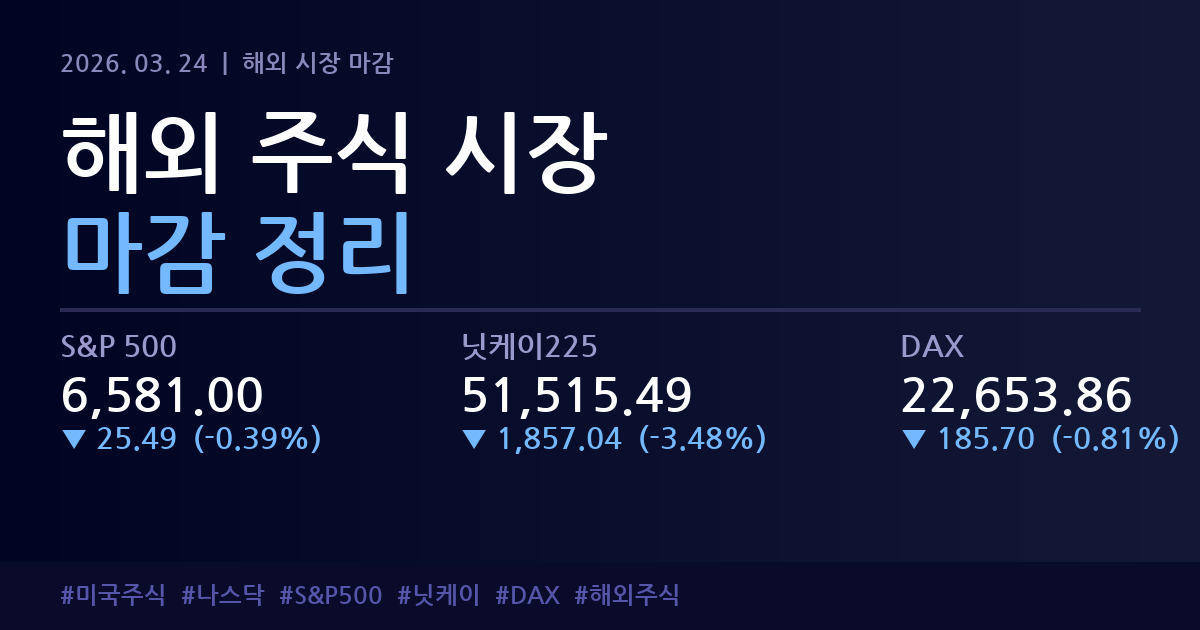 π 2026λ 03μ 24μΌ ν΄μΈ μ£Όμ μμ₯ λ§κ° μ 리