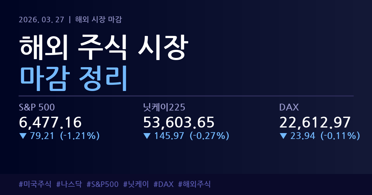 ๐ŸŒ 2026๋…„ 03์›” 27์ผ ํ•ด์™ธ ์ฃผ์‹ ์‹œ์žฅ ๋งˆ๊ฐ ์ •๋ฆฌ | ๋ฏธ๊ตญ ์ผ๋ณธ ์œ ๋Ÿฝ ์ง€์ˆ˜