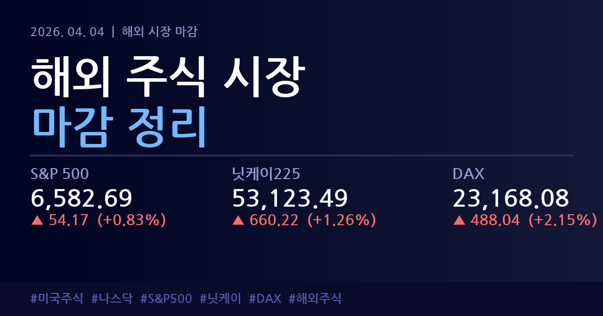 ๐ 2026๋ 04์ 04์ผ ํด์ธ ์ฃผ์ ์์ฅ ๋ง๊ฐ ์ ๋ฆฌ